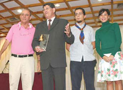 Tras esta entrega, Losilla quiso homenajear al alcalde por el apoyo al Octubre Joven, entregándole una réplica de campana de la Estación de Ferrocarril de Águilas, al tiempo que le lanzaba un mensaje de apoyo: ”como todos, queremos que se siga potenciando, por ello te entregamos este trofeo con el que el próximo año podrás dar el campanazo de salida al Octubre Joven 2006. Esperamos que aún sea mejor que el de este año y se lleven a cabo más actividades”.